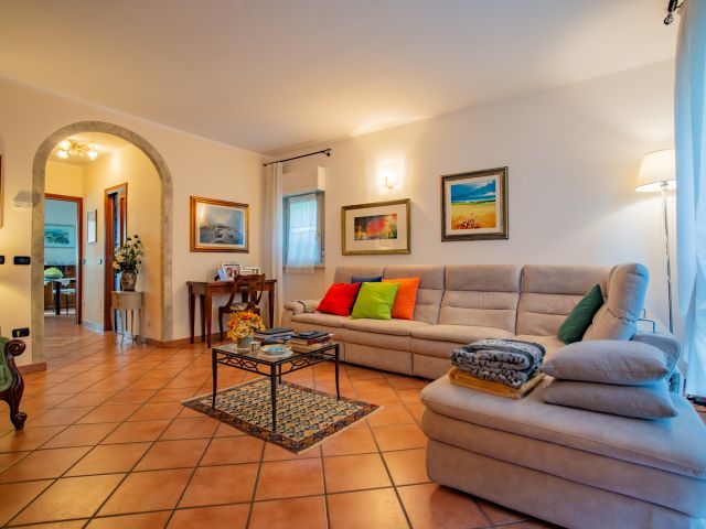 With 141 square meters (1,518 square feet) of living space and a total commercial area of 177 square meters (1,905 square feet), this home combines comfort and elegance. Modern amenities include an alarm system, digital and satellite TV, fiber internet, and energy-efficient autonomous methane heating. The property also offers the intriguing possibility of division into multiple units, providing flexibility for various living arrangements or investment opportunities.